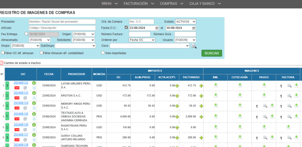- Registro automático de Proveedores desde SUNAT o RENIEC. Validación de RUC desde la Orden de Compra